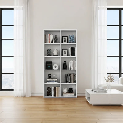 Usa o mesmo corpo da estante de livros Bürohaus: MDF BP 15 mm, fundo 6 mm, prateleiras que não envergam com lombada pesada. Pensada para encadernados, omnibuses e coleções de banca que viraram biblioteca.