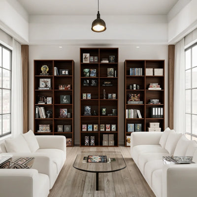 2 colunas = equilíbrio. A mais escolhida. Cabe coleção média, grande ou em crescimento. Funciona em qualquer contexto.